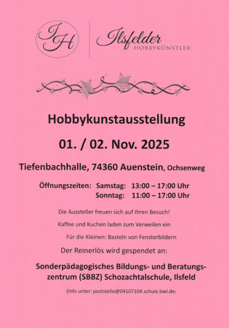 Dann entdeckt bei der Hobbykunstausstellung die Vielfalt der Kunst: bunt, lebendig und überraschend. Und für eine kleine Stärkung zwischendurch ist auch gesorgt.